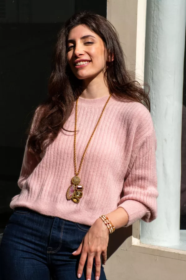 - All our pieces are first designed and crafted by Sylvie. The designer focuses on the precision and harmony of stones, crystals, and threads.