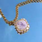 Pendentif pierre fine. Réalisé entièrement à la main au crochet. Un bijou lumineux qui se porte au quotidien avec légèreté et bonne humeur.