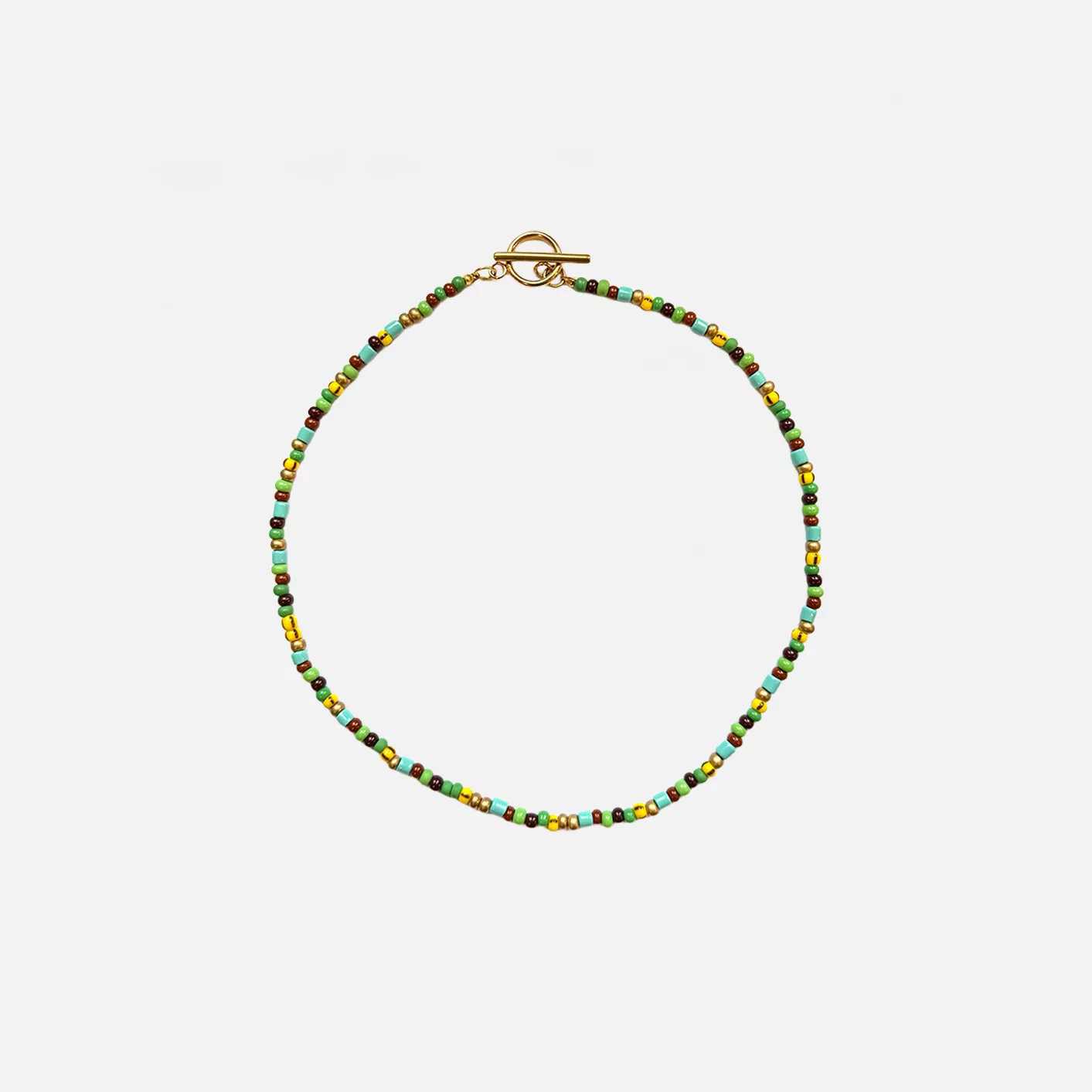 Collier en perles de verre. Un assemblage subtil de couleurs et de formes, en parfaite harmonie.