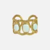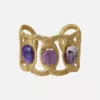 Manchette ajustable en lurex ornée de 3 pierres fines. Réalisée à la main au crochet. Un bijou audacieux qui habille le poignet avec grâce et modernité.
