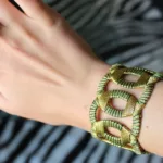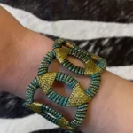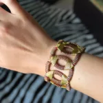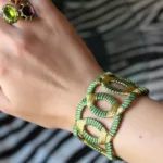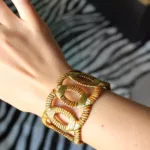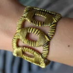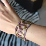 Manchette ajustable en coton et lurex. Réalisée à la main au crochet.