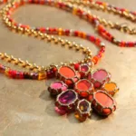 Sautoir en pierres fines et fil à broder. Réalisé entièrement à la main au crochet. Une pièce de caractère, pensée pour les femmes qui aiment jouer avec audace et grâce.
